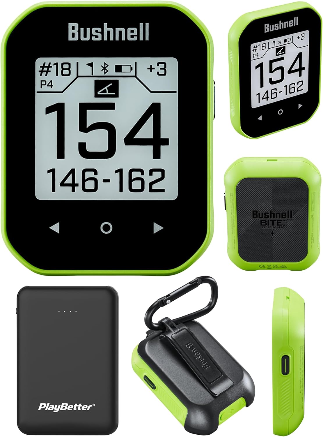 Effortlessly track your scores with the auto-prompt score entry feature, allowing you to focus on your game without any distractions. The bundle includes a PlayBetter Portable Charger to ensure your device stays powered up throughout your round, as well as a convenient belt clip and carabiner for easy accessibility on the go.